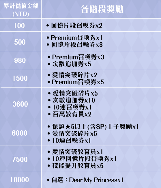 1.本次更新後,將開放【Dear My Princess】限時累儲回饋活動!