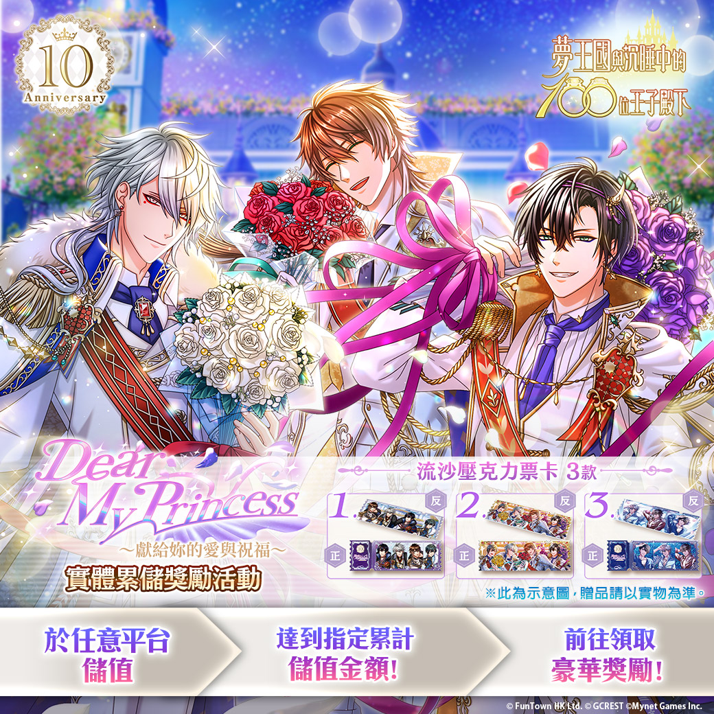※壓克力流沙票卡共有3款,3位人氣五星王子以活動姿態 –Dear My Princess各種覺醒Ver.、未覺醒Ver.的版本登場。