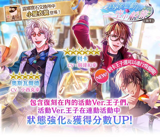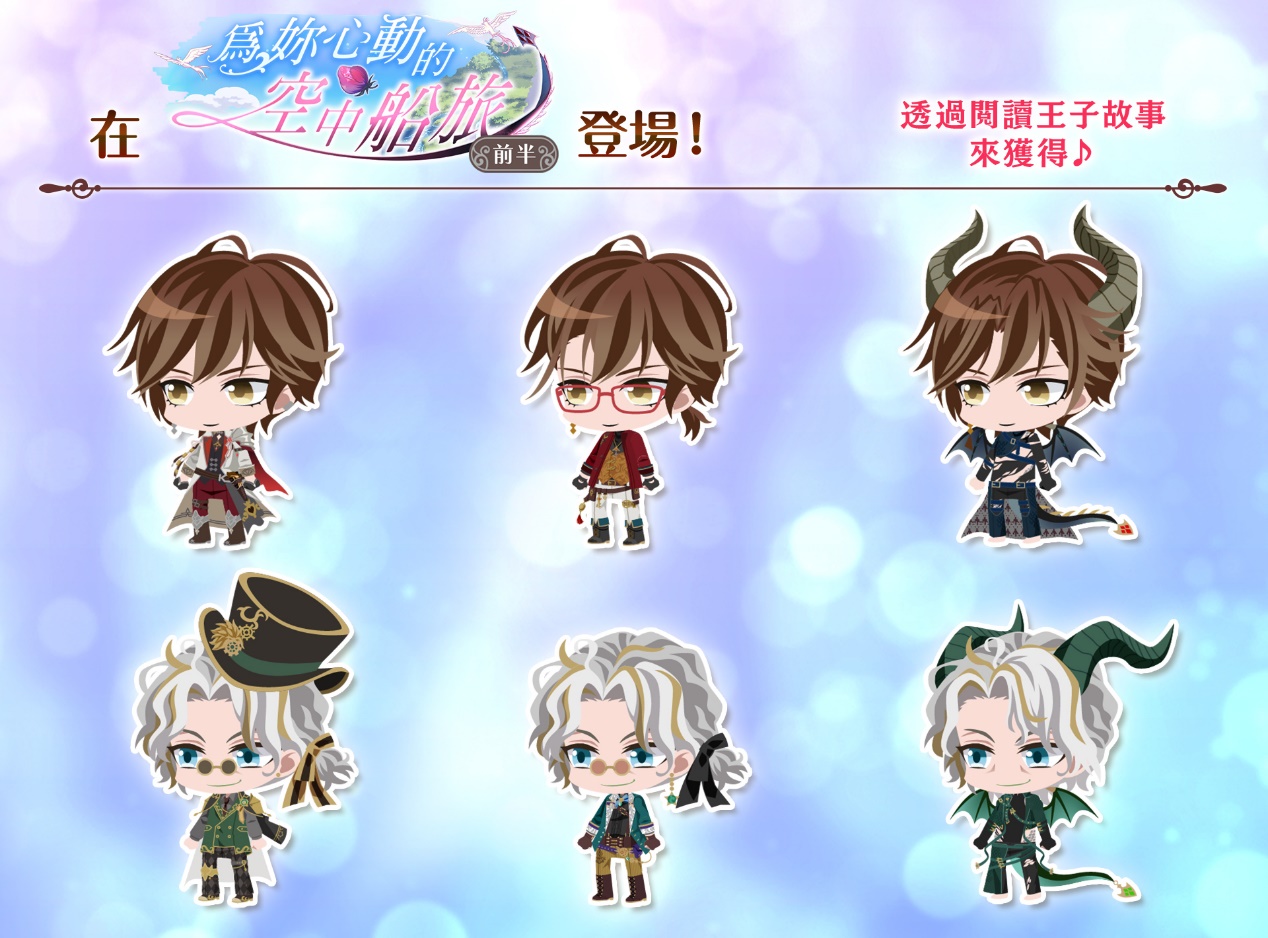 活動期間進行【為妳心動的空中船旅 前半】活動任務,即可獲得活動限定活動點數。累積獲得活動點數,即可獲得活動限定王子,以及豪華獎勵。