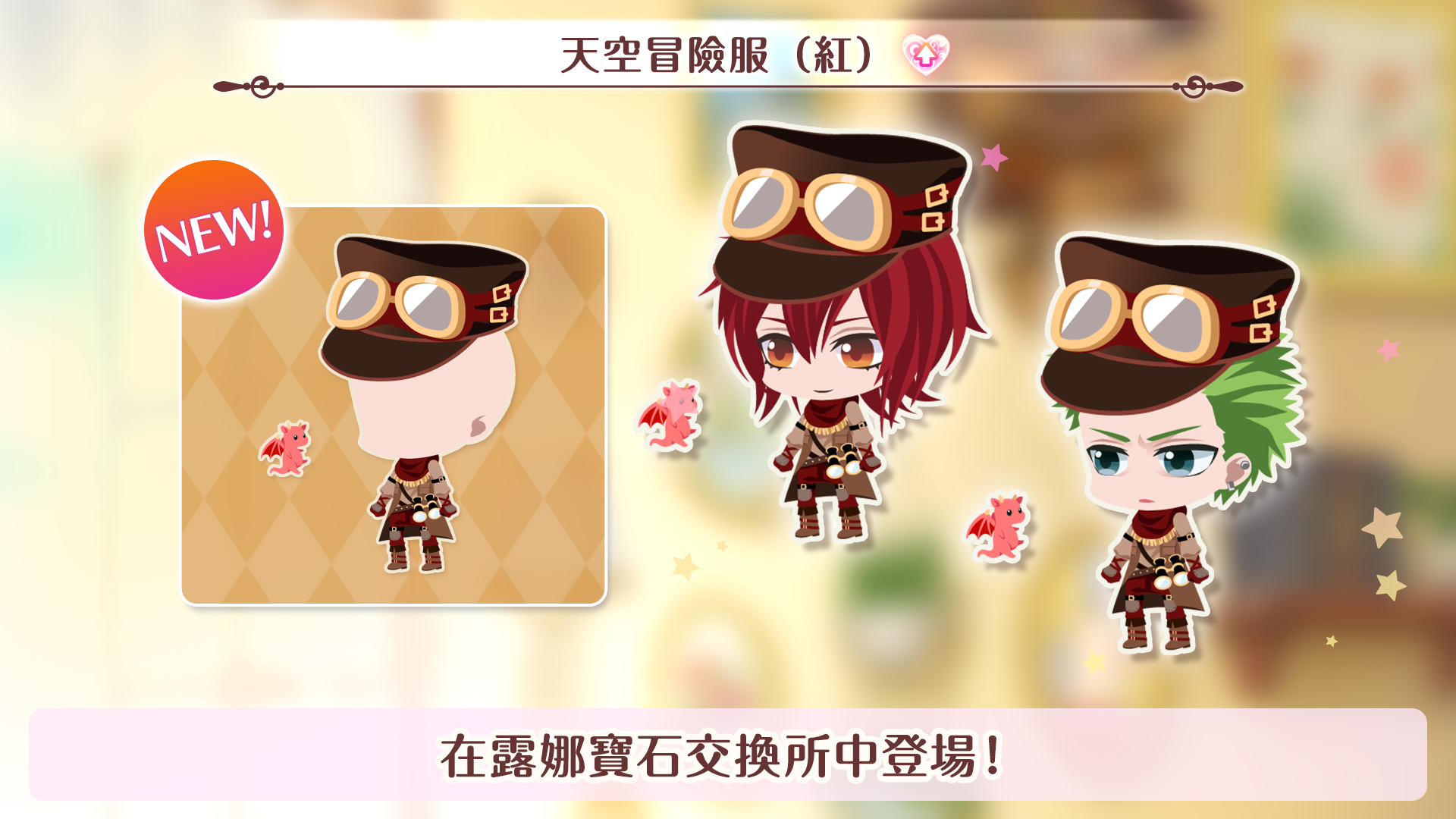 本次船旅前半露娜寶石所中包含了小屋衣裝「天空冒險服(紅)」,將會轉換為小屋衣櫃中王子可穿戴的衣裝喔。
