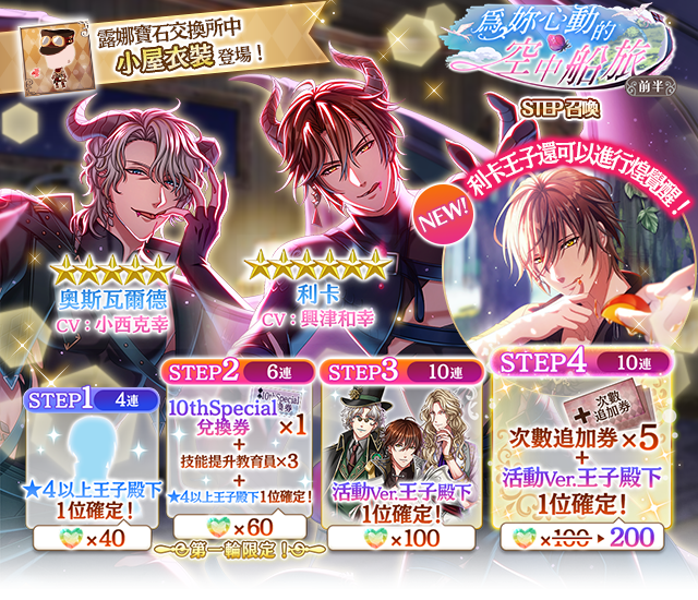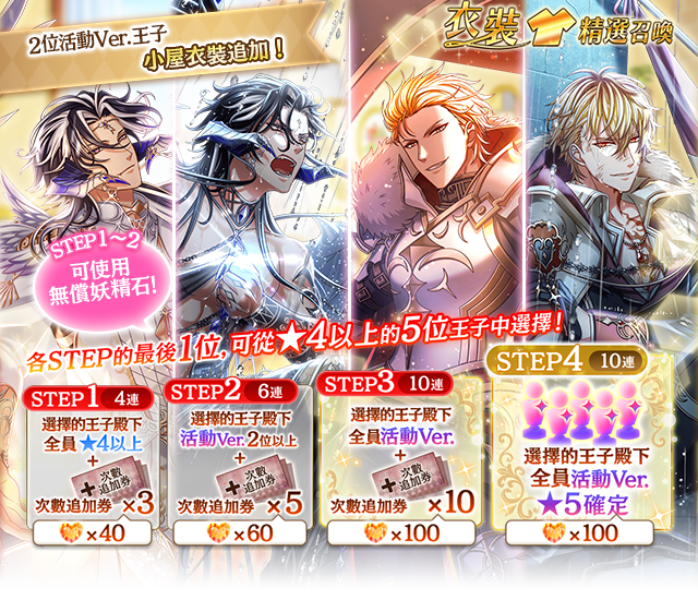 ・本次王子召喚特別加開【STEP召喚】,可使用有償妖精石進行召喚!