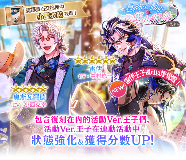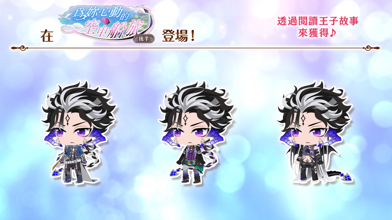 活動期間進行【為妳心動的空中船旅 後半】活動任務,即可獲得活動限定活動點數。累積獲得活動點數,即可獲得活動限定王子,以及豪華獎勵。