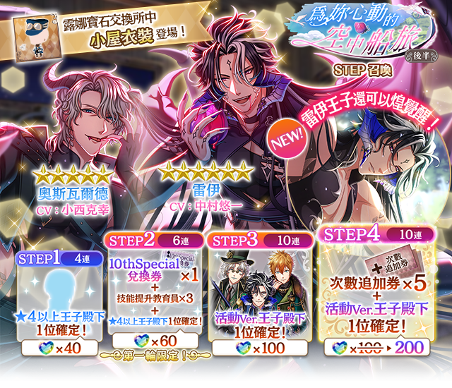 ・本次王子召喚特別加開【STEP召喚】,可使用有償妖精石進行召喚!