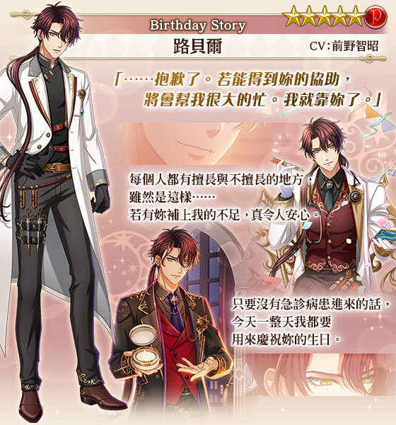 ※★5路貝爾:Birthday Story於未來五週內的活動都有特別加成。