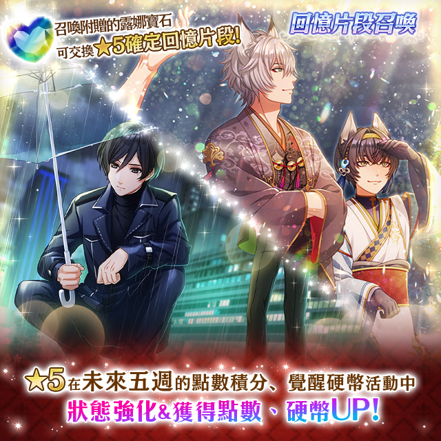 ★5回憶片段,將在未來四週的活動點數、覺醒硬幣活動中附有加成效果喔!並且在本次的回憶片段召喚中,出現機率加倍!