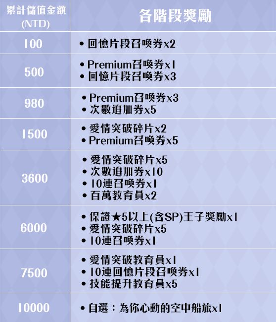 ※本次累儲活動各階段儲值遊戲獎勵限定領取2次循環。