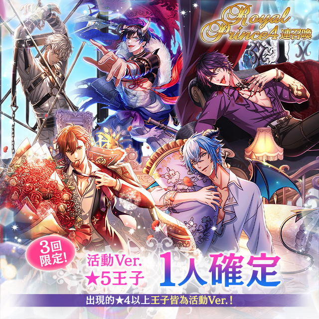 在本次召喚中,出現的4名王子中,必定有1名是活動版本的★5王子!