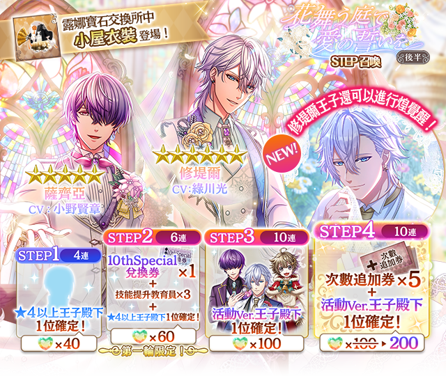 ・本次王子召喚特別加開【STEP召喚】,可使用有償妖精石進行召喚!