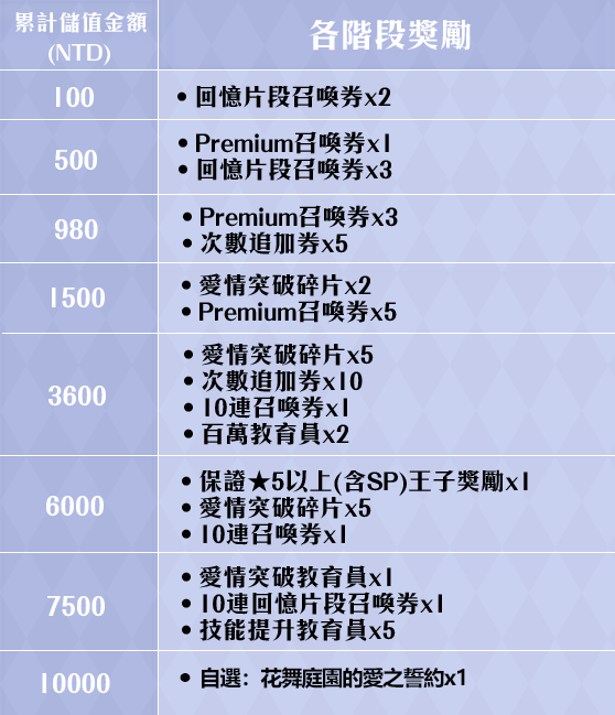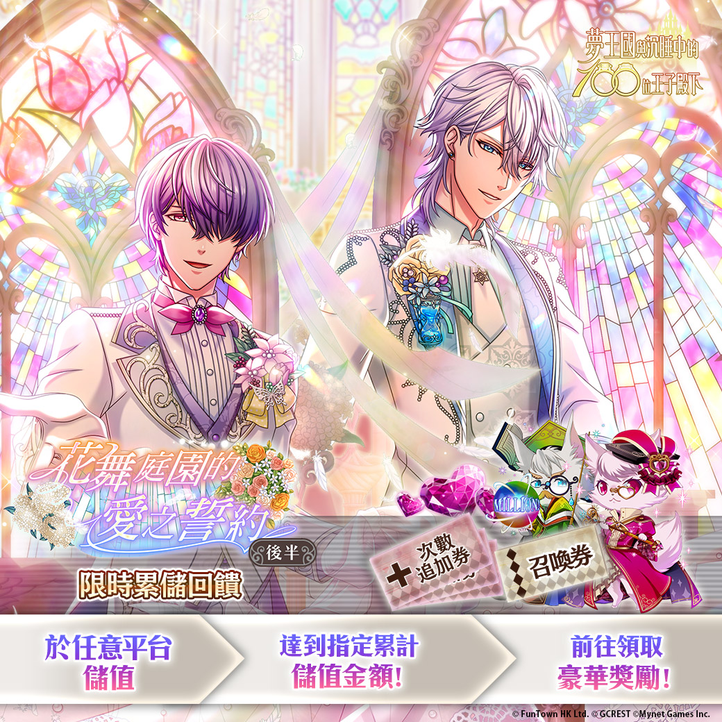 1.本次更新後,將開放【花舞庭園的愛之誓約 後半】限時累儲回饋活動!