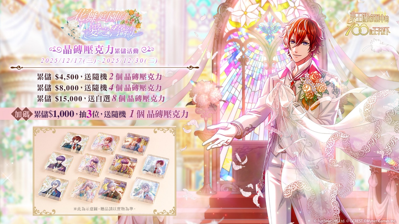 限時累儲加碼送開跑囉!完成指定門檻送花舞庭園的愛之誓約壓克力晶磚!