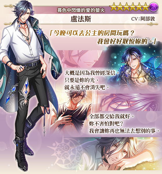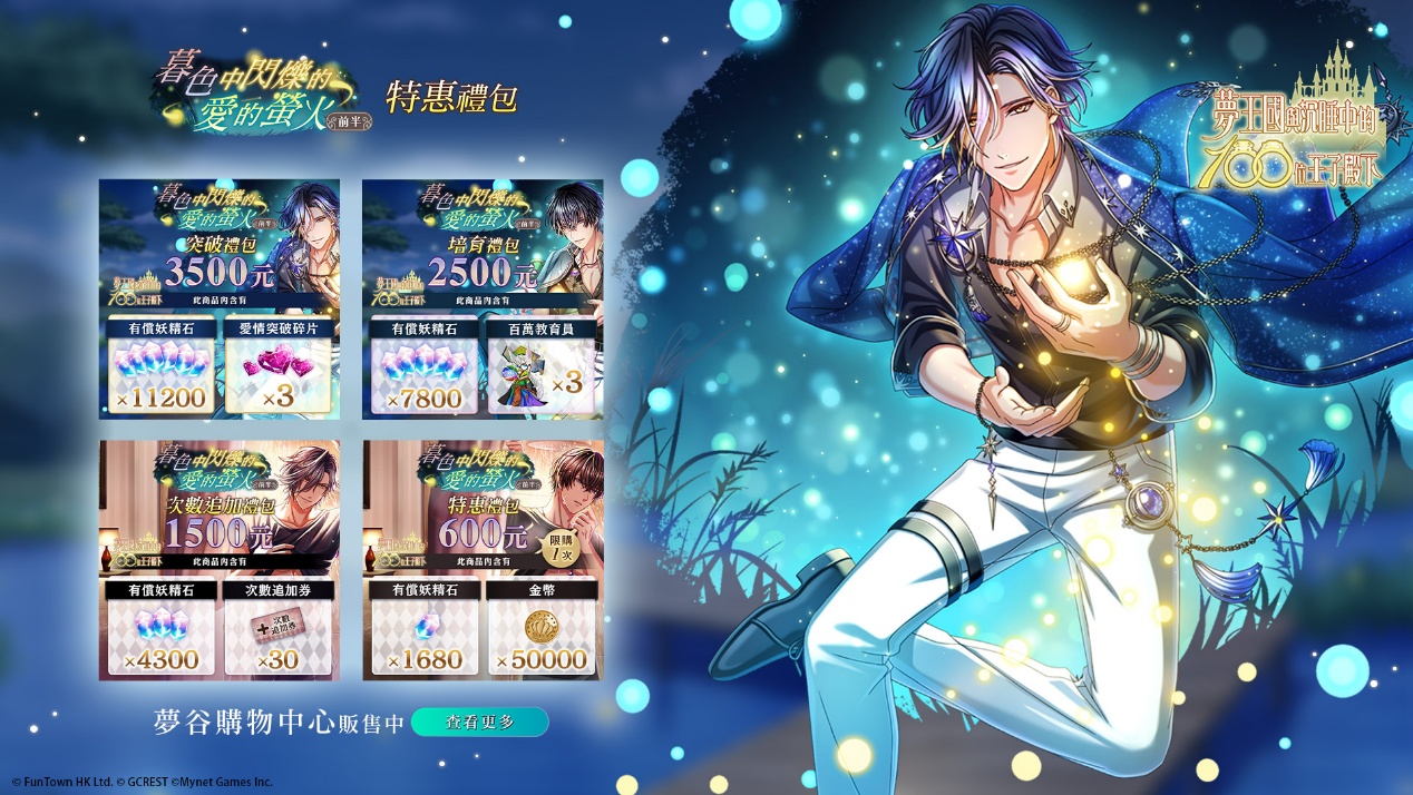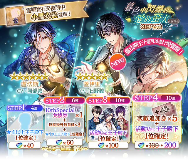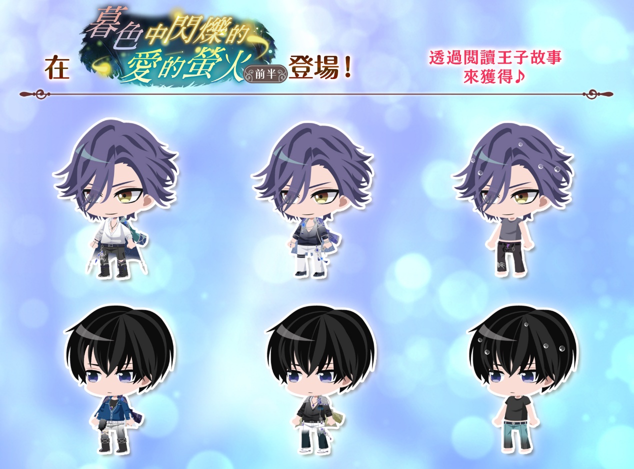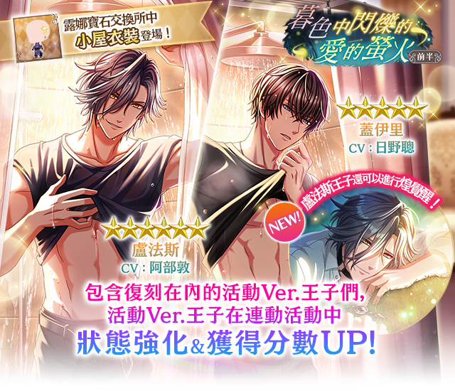 活動期間進行【暮色中閃爍的愛的螢火 前半】活動任務,即可獲得活動限定活動點數。累積獲得活動點數,即可獲得活動限定王子,以及豪華獎勵。