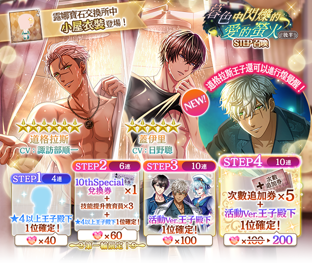 ※此次召喚將可獲得[螢火後半露娜寶石]可至[螢火後半露娜寶石交換所]兌換活動王子,[螢火後半露娜寶石交換所]交換所開放期限至2026/03/24(二)11:59為止。