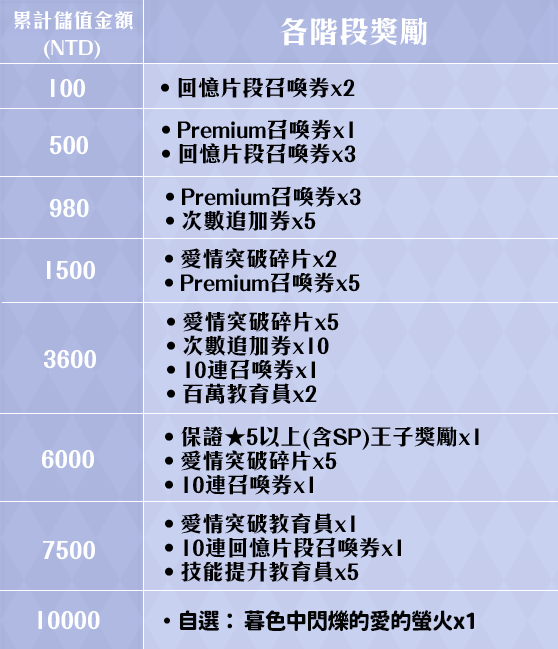 ※本次累儲活動各階段儲值遊戲獎勵限定領取2次循環。